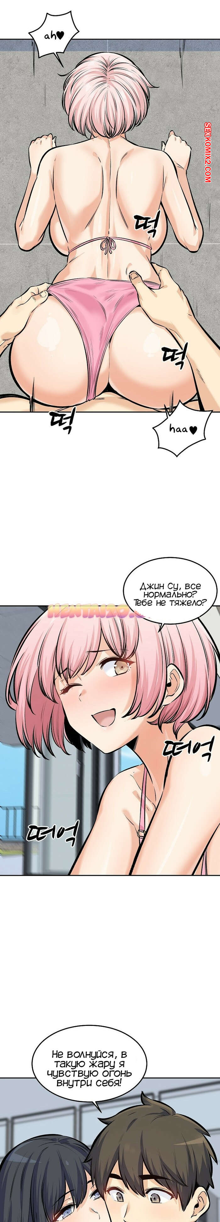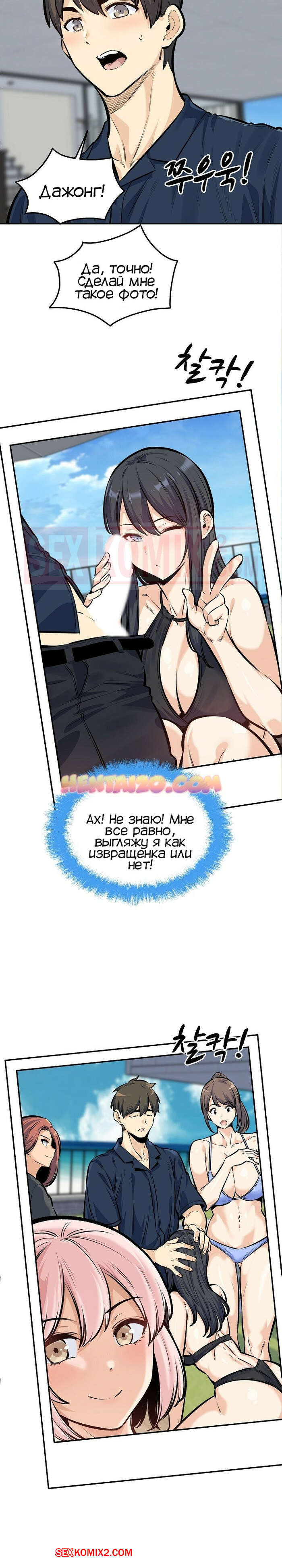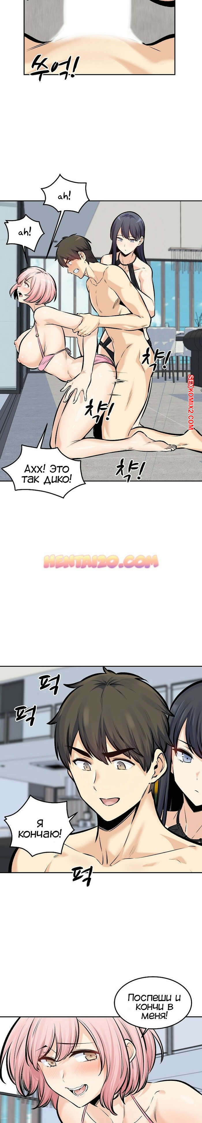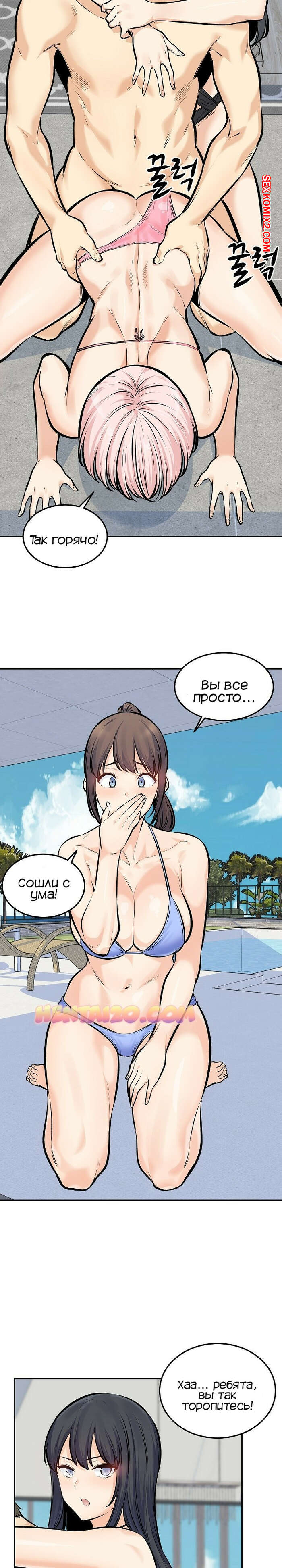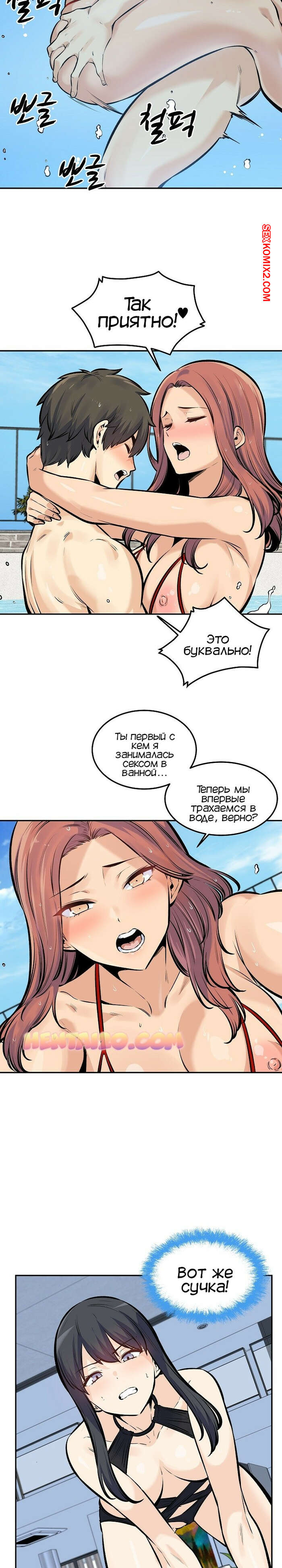 Порно комикс Извини, это моя комната. Часть 118. Excuse me This is my Room Джин Су приехал со своими девушками на курорт и красотки сразу решили повеселиться с парнем. Они отсосали его большой хуй и дали ему себя выебать, после чего одна из красоток решила с ним поебаться в бассейне.