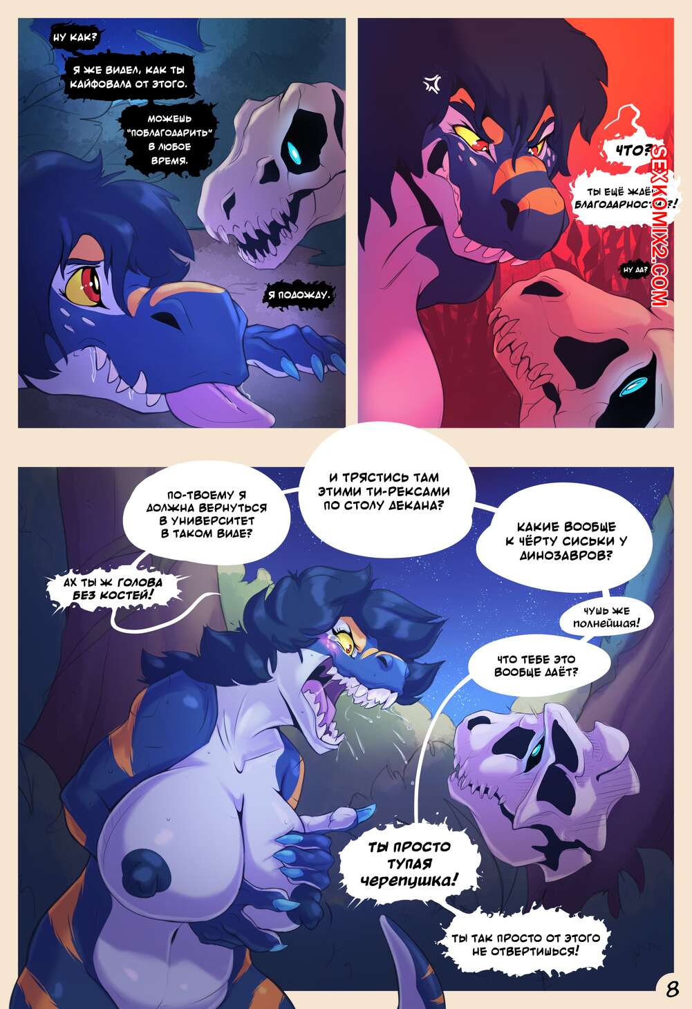 Порно комикс Паникующий динозавр. Paleo panic Горячая красотка брюнетка ходила по лесу, делая исследования, но внезапно она стала превращаться в динозавра. Сучка так сильно было возбуждена, что стала ласкать свою пизденку.