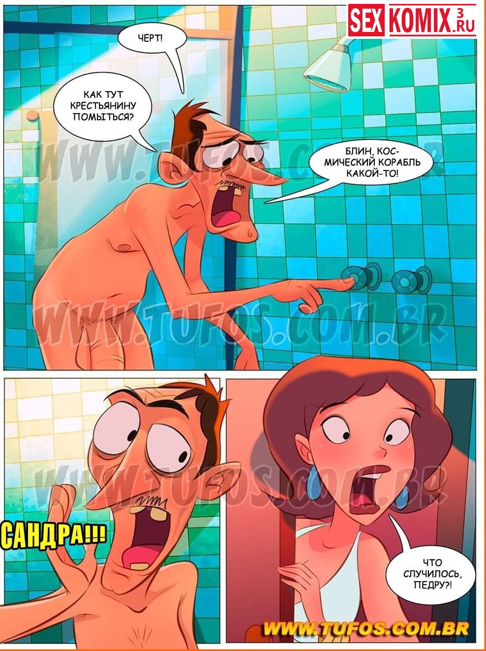 Смотрите секс комикс «Деревенская семейка. Часть 15. Отпуск в большом городе». Порно комиксы на русском покажут еще одну историю. На этот раз наши герои решили провести свой отпуск в большом городе. Они наведались в гости к сестре доны Чики. Так вот, сеньор Педрао решил принять душ, тут пришла сестра жены, которая тоже решила помыться вместе с зятьком.