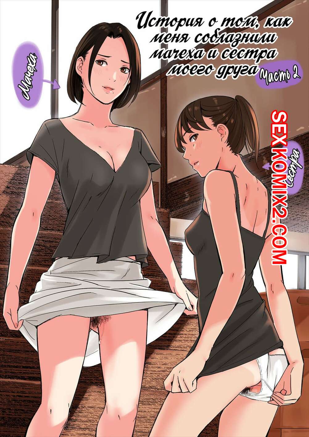 Порно комикс История о том, как меня соблазнили мачеха и сестра моего друга. Часть 2 Сисястая милфа брюнетка и его дочка позвали вновь к себе друга своего сына. Они стали соблазнять его и сосать большой хуй парня, после чего дали ему себя хорошенько выебать.