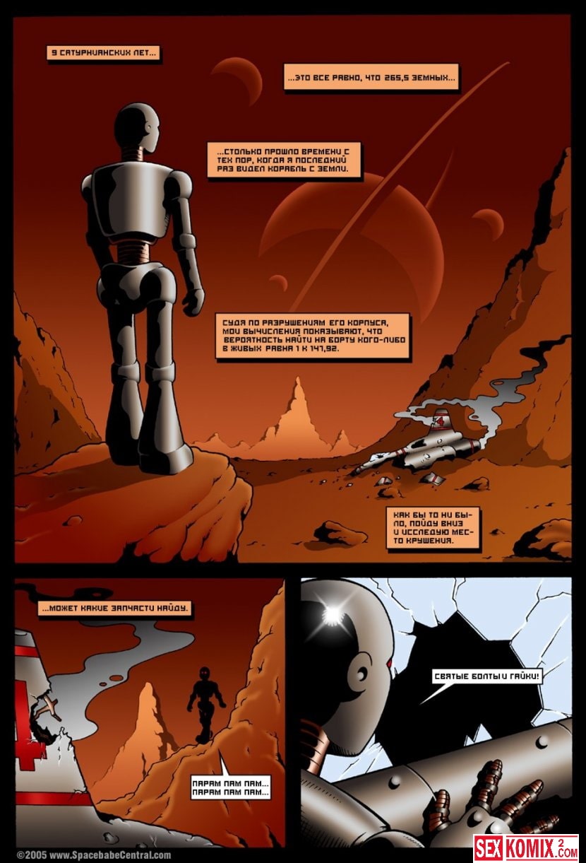 Порно комикс Похотливая наука. Сексуальная блондинка в большими сиськами и сочными губками из будущего, решила попробовать секс с роботом. Для этого у него есть член похожий на человеческий, но металлический. Стоит он очень крепко и удовольствия девушка получила больше.