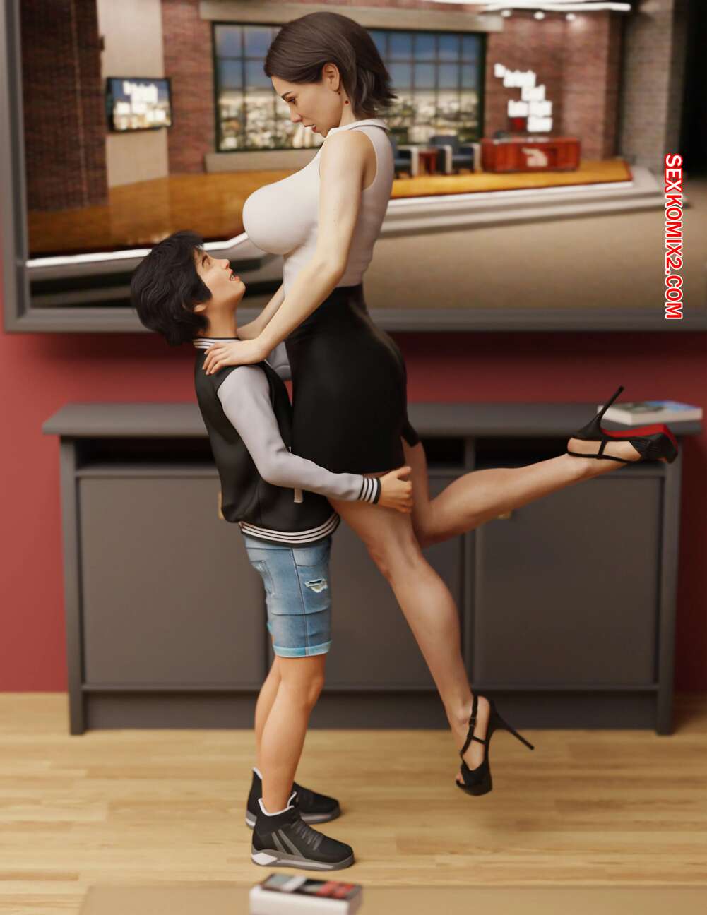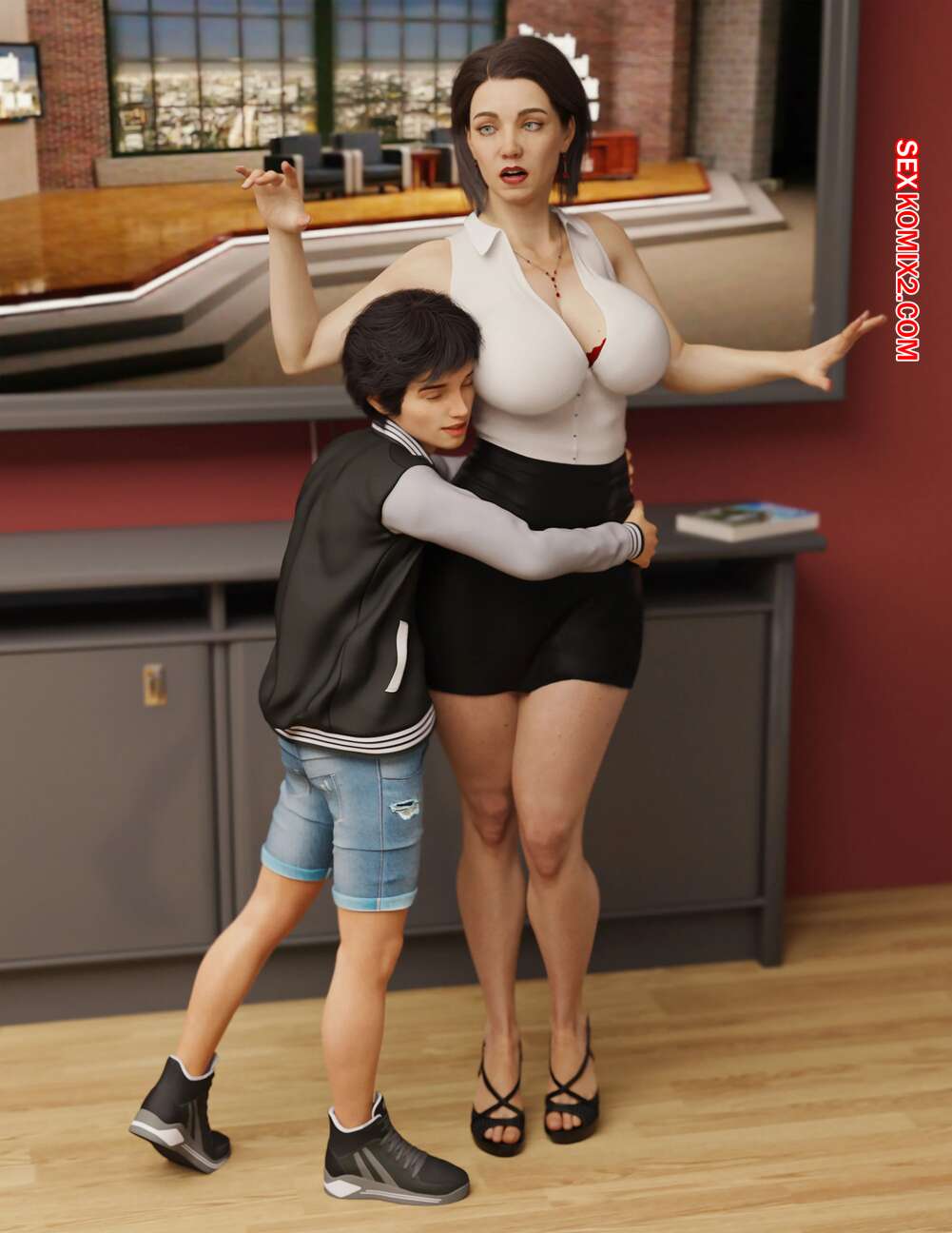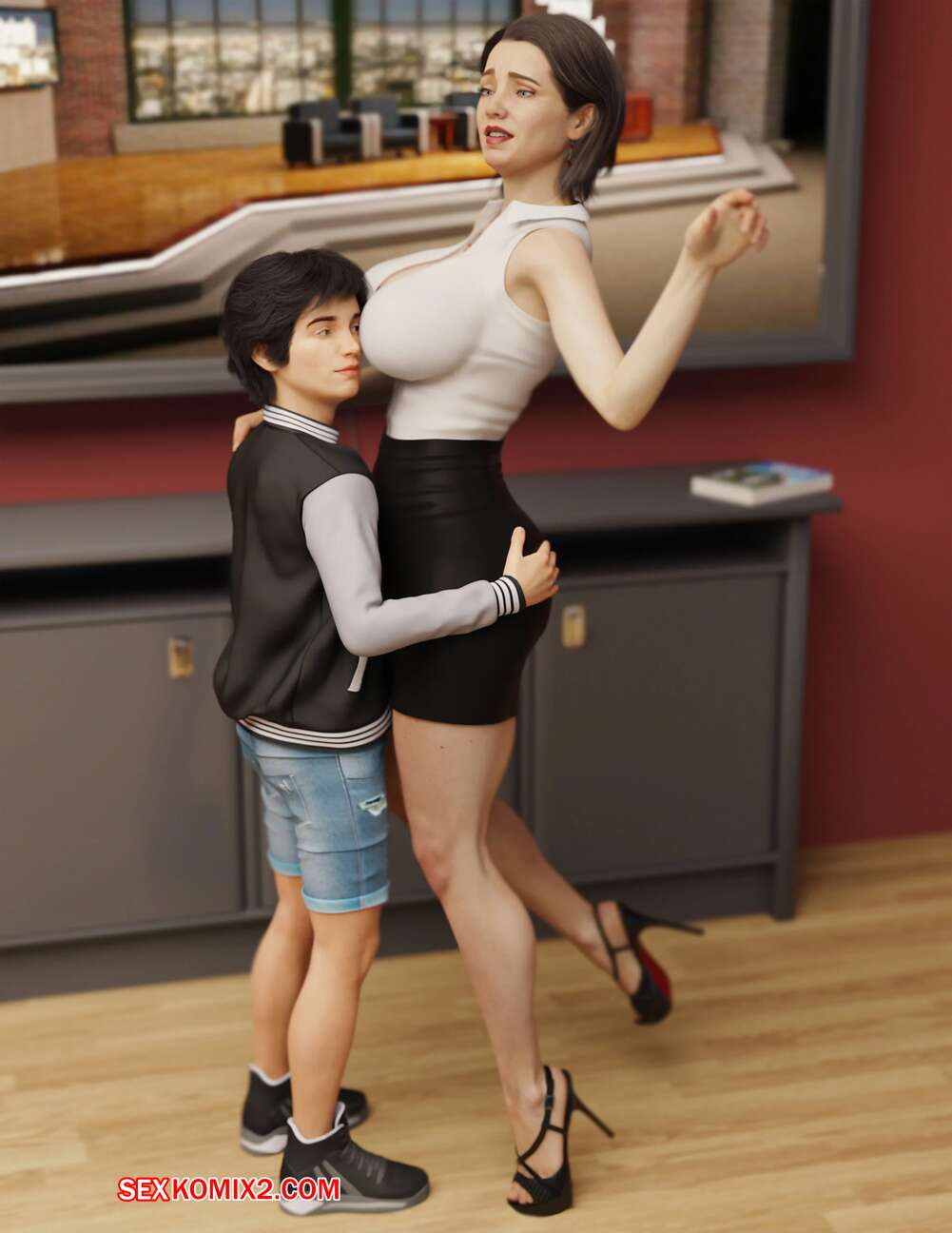 Порно комикс Мощный. Powerful. Mr.FOXX Молодой парнишка обладет огромной силой. Он отправился в офис к горячей сисястой милфе, чтобы хорошенько с ней повеселиться. Он раздел ее и стал шлепать ее по попке, после чего стала ласкать ее пизденку.