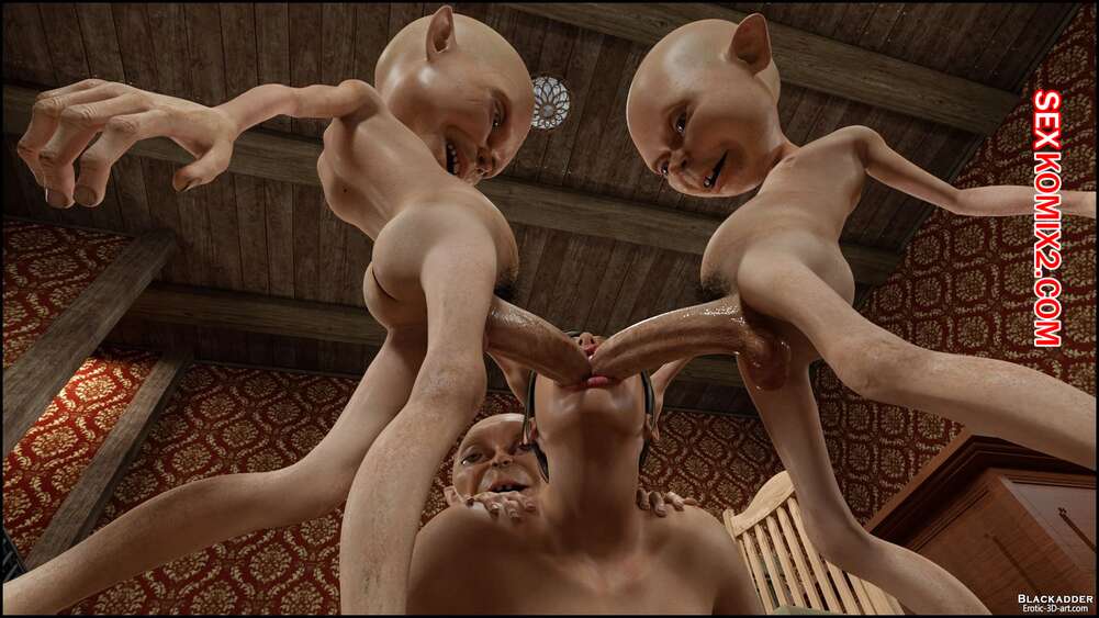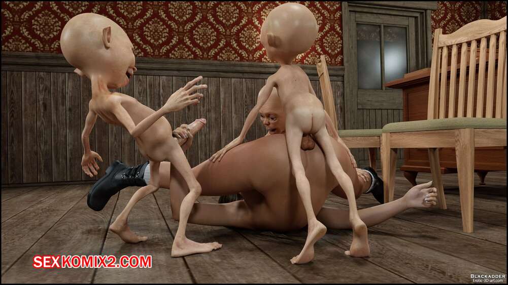 Порно комикс Gisela and Alien. Часть 2. Blackadder Инопланетяне с большими хуями были очень возбуждены и решили повеселиться с горячей сисястой брюнеткой. Они дали ей отсосать свои большие хуи, после чего выебали ее во все дырочки.