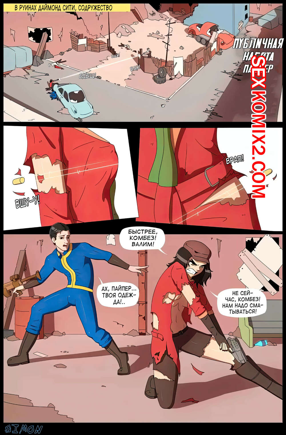 Порно комикс Fallout. Публичная нагота Пайпер. Aurorazone Горячая сисястая брюнетка оказалась голой на улице и парни сразу заметили это. Они стали ласкать сиськи девушки и ее влажную пизденку, но за нее быстро заступислся ее дружок.