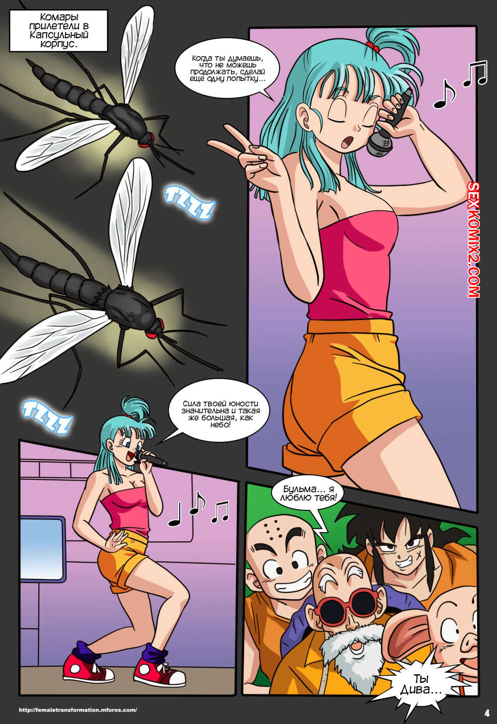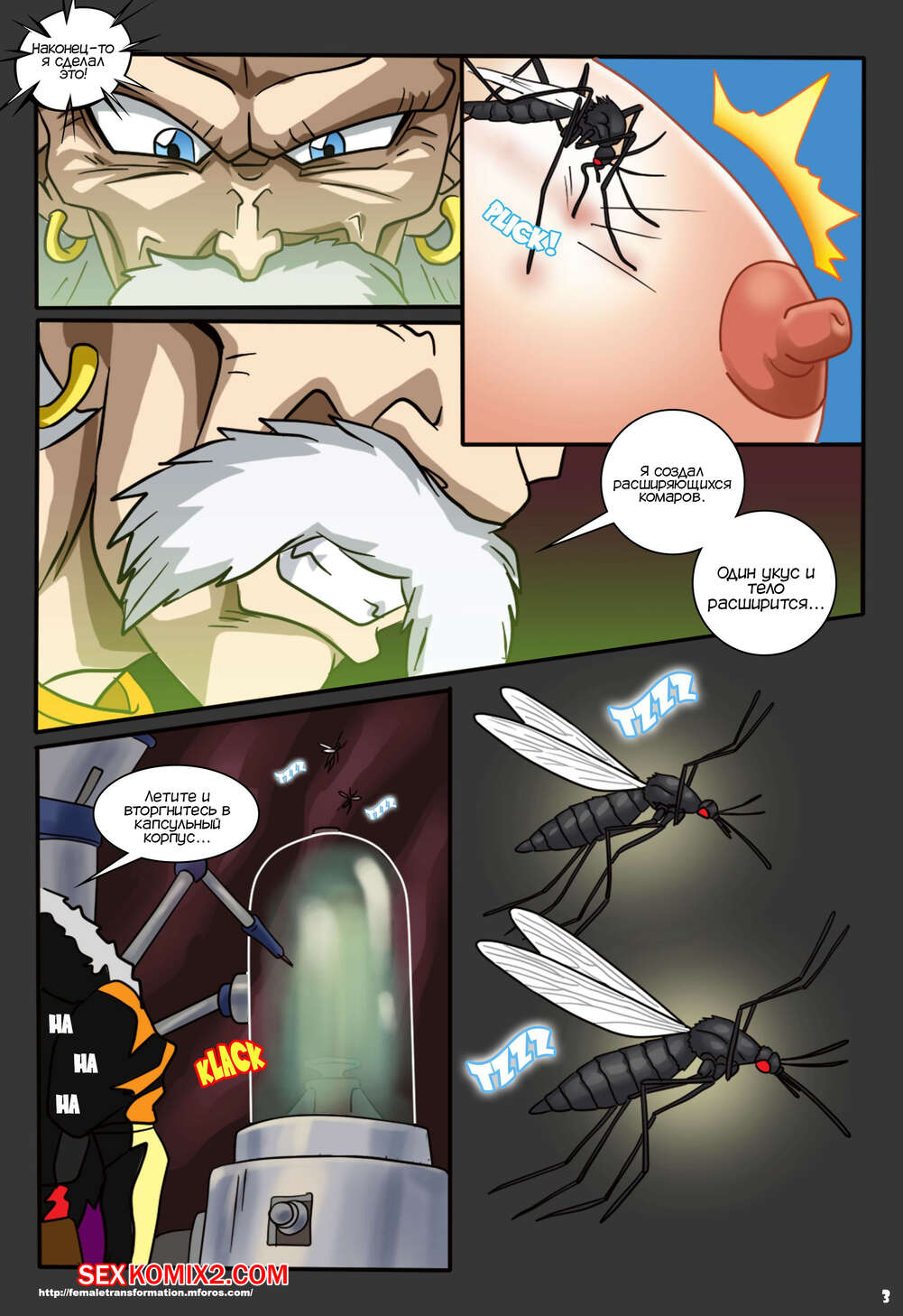 Порно комикс Dragon Ball. Экспансивное жало. Часть 1. Expansive Sting. Locofuria Старик создал особый вид комаров и поручил им первое задание. Комар укусил сексуальную красотку Бульму, у которой резко выросли сиськи и задница, а девушка стала ласкать свою пизденку.
