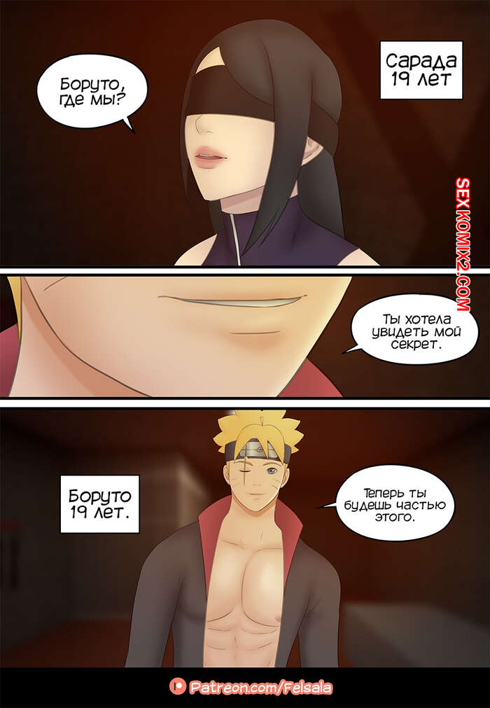 Порно комикс Секрет Боруто. Borutos Secret. Felsala Горячая красотка Сарада хотела узнать секрет Боруто и парень решил привести девушку к себе в тайную комнату. Там он захотел, чтобы она стала частью его секрета, поэтому быстро сорвал с нее одежду, желая ее выебать.