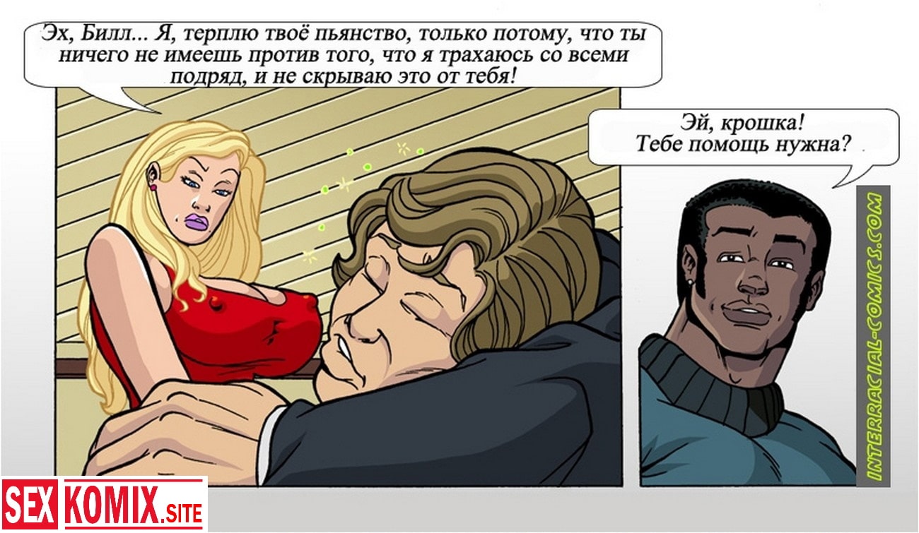 Порно комикс Жены тоже хотят развлекаться. Сексуальная блондинка сидит в баре со своим пьяным мужем, но уже готов. И два чернокожих парня предложили помочь девушке, увезти её и мужа домой. Но по дороге начали приставать к красотке, что бы она рассчиталась за доставку своим шикарным телом. Девушка позволила себя трахнуть, и два черных члена пронзили эту белую киску.