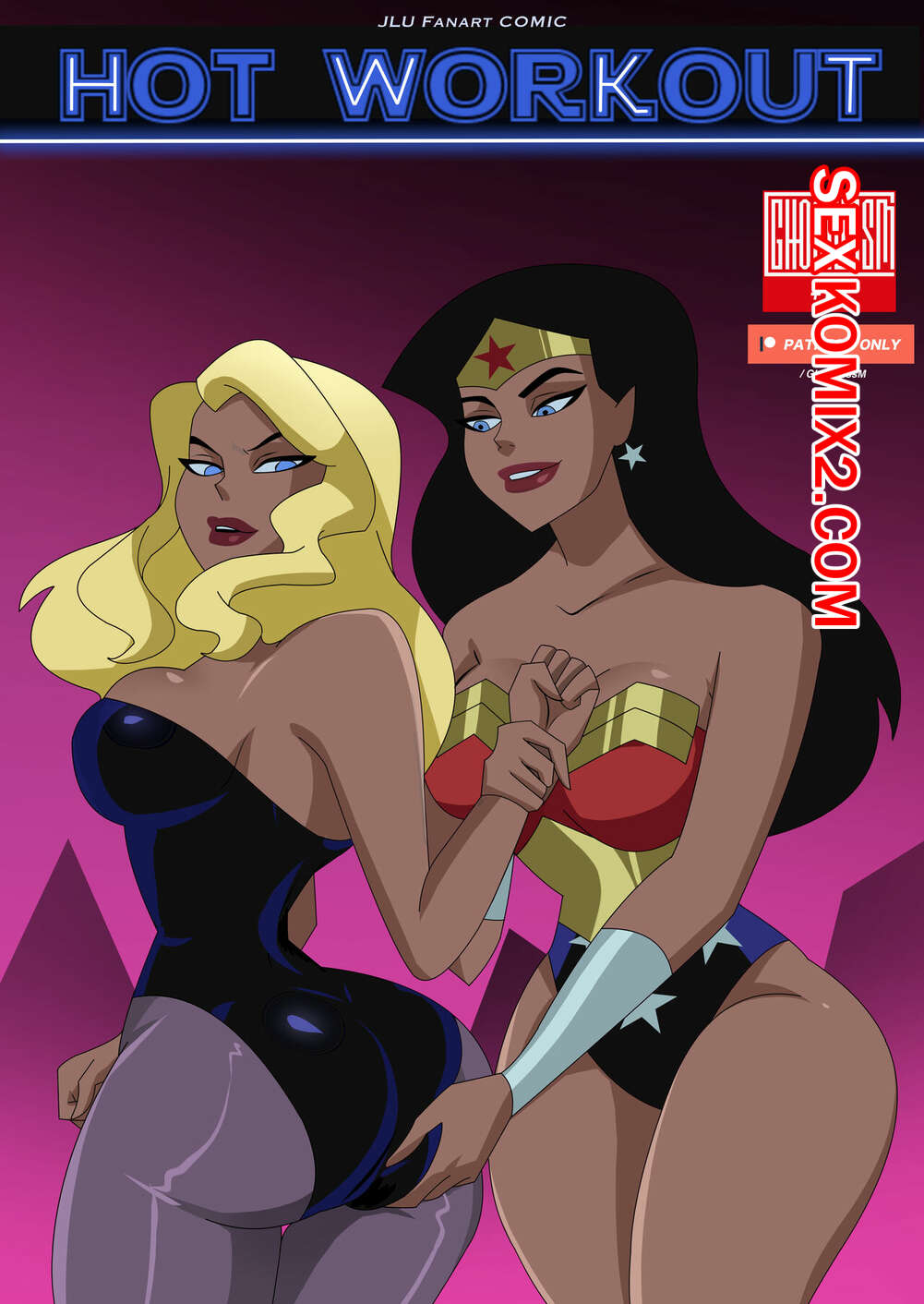 Порно комикс Лига справедливости. Горячая тренировка. Hot Workout. Ghostlessm ЧудоЖенщина застала Черную канарейку за тренировкой и предложила ей сделать особый массаж. Красотки разделись и стали ласкать друг дружку, после чего занялись страстной лесбийской еблей.