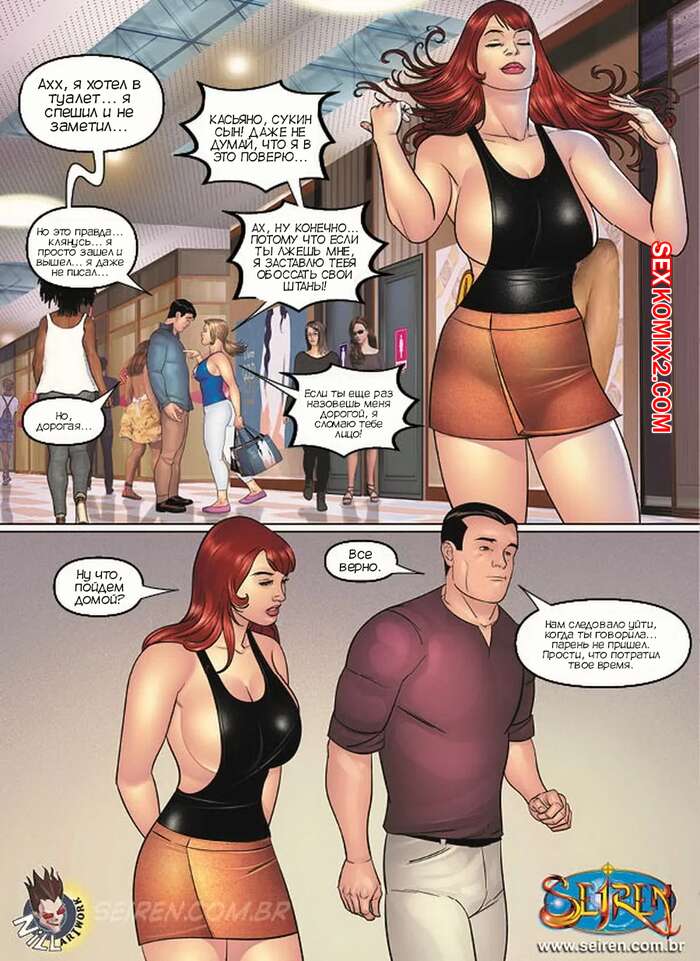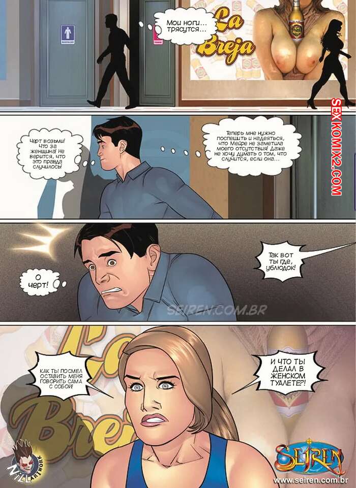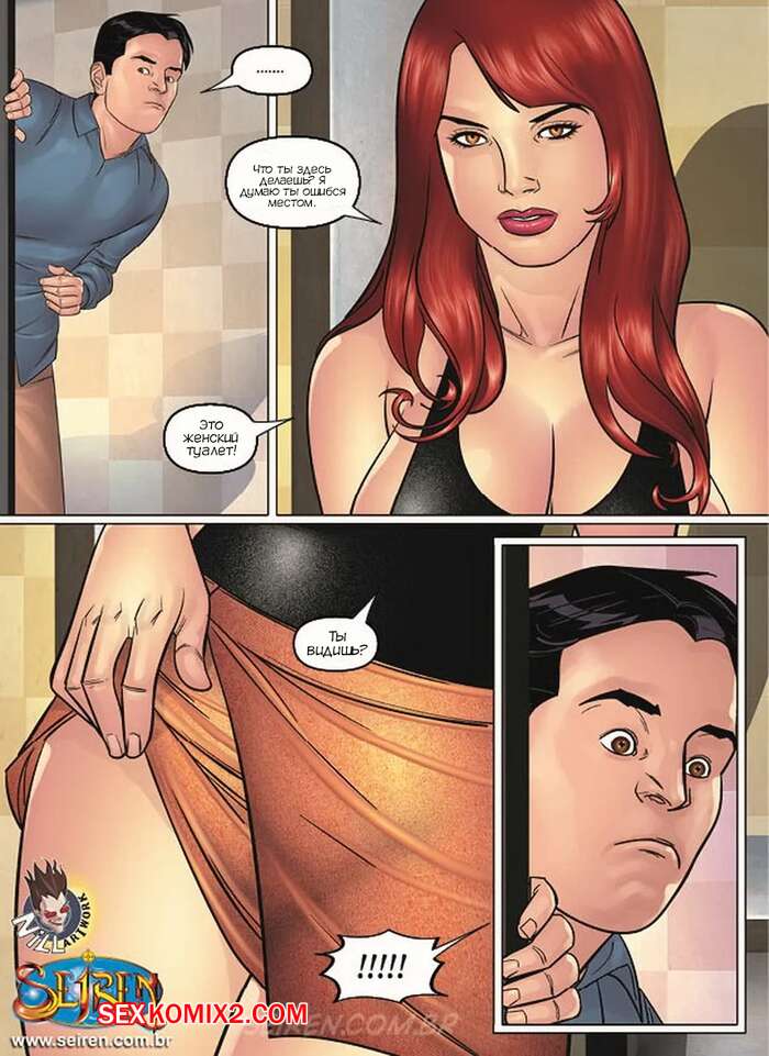 Порно комикс Приключения Лии. Часть 16. Seiren Парень увидел, как рыжая красотка зашла в туалет и отправился за ней. Красотка решила пошалить с парнем и стала сосать его большой хуй, после чего он выебал ее в пизду и задницу.