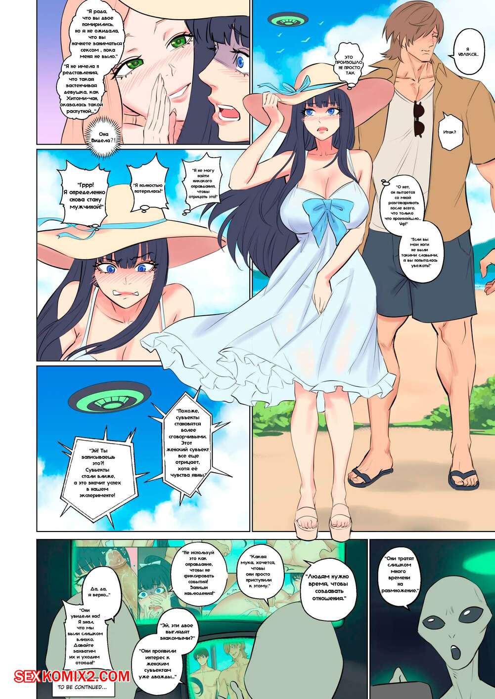 Порно комикс Alien Abduction. Часть 2. Arisane Сексуальная брюнетка отдыхала на пляже, где положила глаз на симпатичного парня. Красотка разделась перед ним и стала у него отсасывать, после чего дала ему себя выебать.