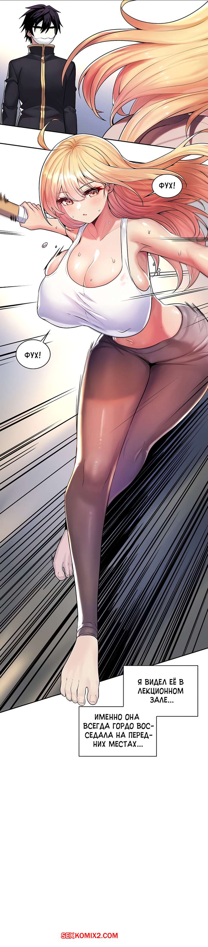 Порно комикс Оплодотворил мировое древо. Часть 16 и 17 и 18. Eat the world tree Горячая блондинка решила потренироваться и обратилась к своему дружку за помощью. Во время тренировки парень не мог свести взгляда от огромных сисек девушки, которые его очень возбудили и девушка это заметила..