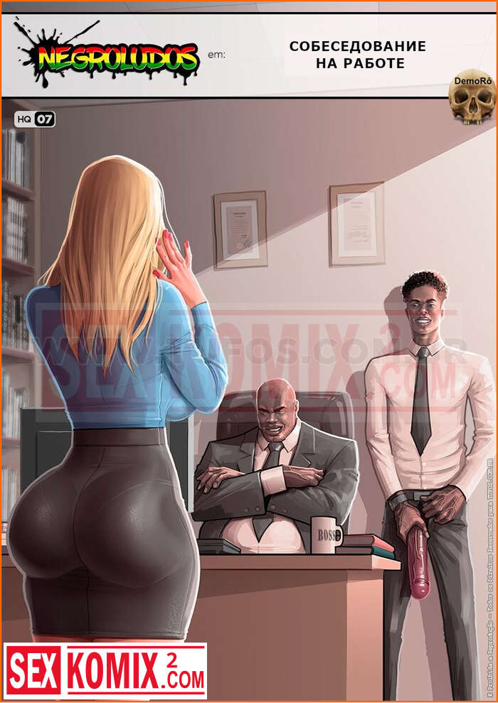 Порно комикс Собеседование на работе. Negroludos. Часть 7. Блондинка пришла устраиваться в крупную компанию на должность юриста. А поскольку проблемы у них бывают, большие босс достал свой большой член и смотрел как она с ним управлялась.