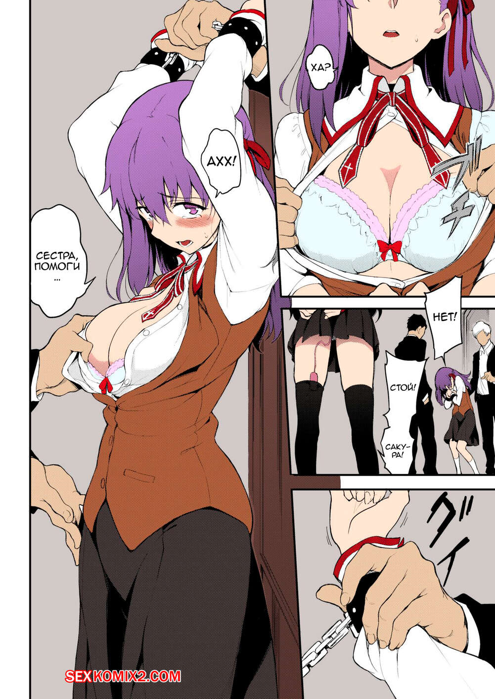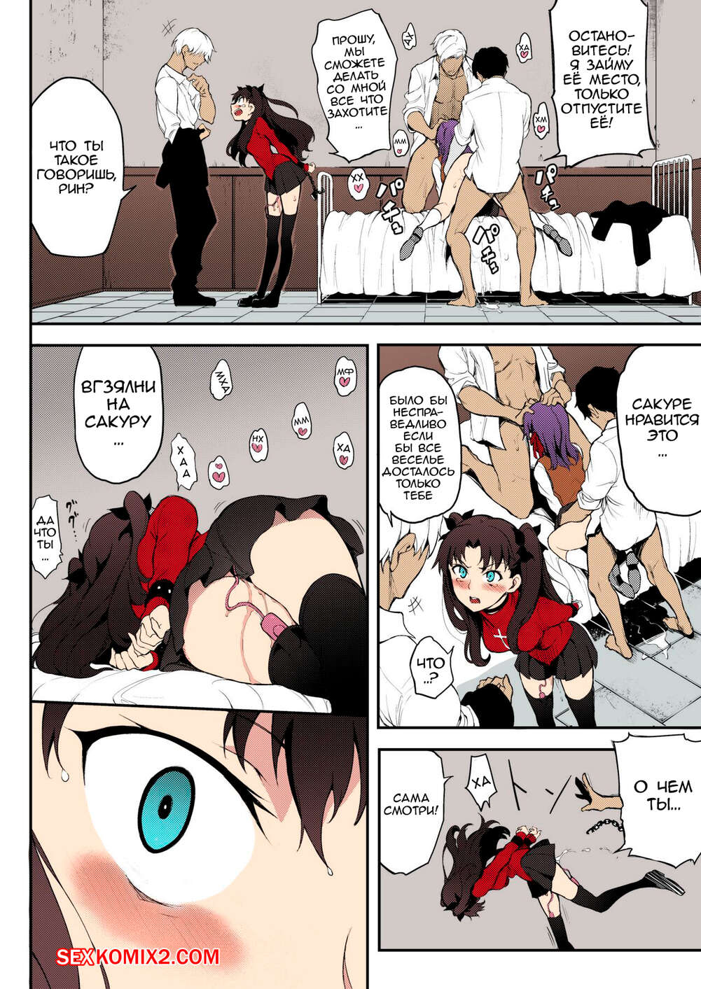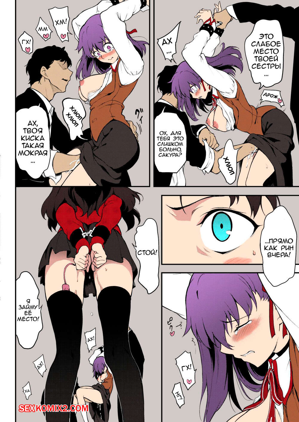 Порно комикс Изнасилование сестëр Тосака. Tohsaka Shimai Ryoujoku. Kyockcho Парни схватили двух горячих сестренок, чтобы повеселиться с ними. Парни раздели девушек и дали им отсосать свои большие хуи, после чего хорошенько выебали их пизденки.