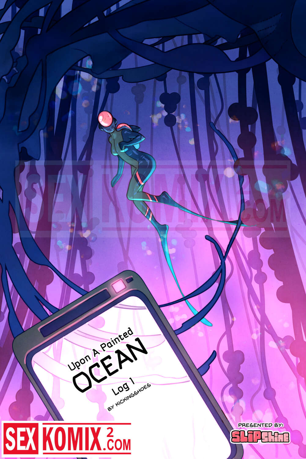 Порно комикс Нарисованный океан. Часть 1. Slipshine. Девушка исследователь прибыла на неизведанный планетоид и погрузилась в океан. Она встретила под водой разумную форму жизни и сама стала целью исследования.
