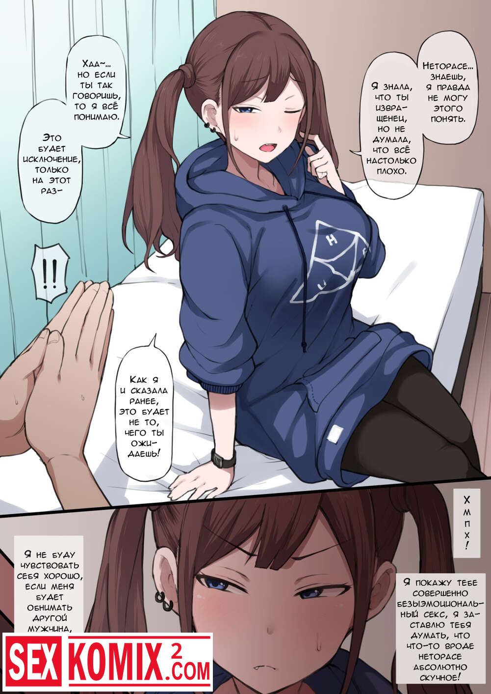 Порно комикс Девушка с двумя косичками не даст мне уснуть. Чтобы разбавить свои отношения парень и девушка пригласили третьего, а её муж смотрел на них через камеру телефона.