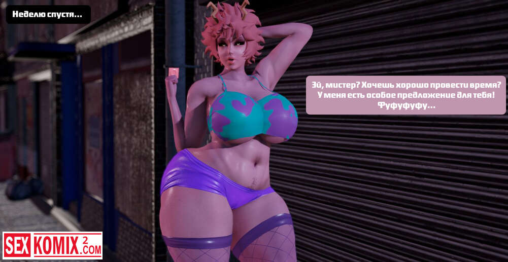 Порно комикс Моя геройская академия. Boku no Hero Academia. Мина уже не так молода и зарабатывает на жизнь работаю проституткой. Вот и пригодился её супергеройский костюм.