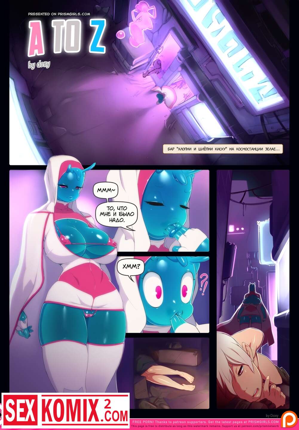 Порно комикс От А до Я. A to Z. Парень трахает сексуальную космическую красавицу в зад. Она сладко стонет и её анальное отверстие растягивается. После того как она кончает, он суёт свой член ей в киску и кончает сам.