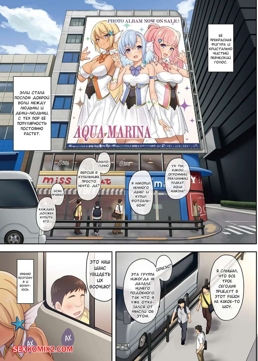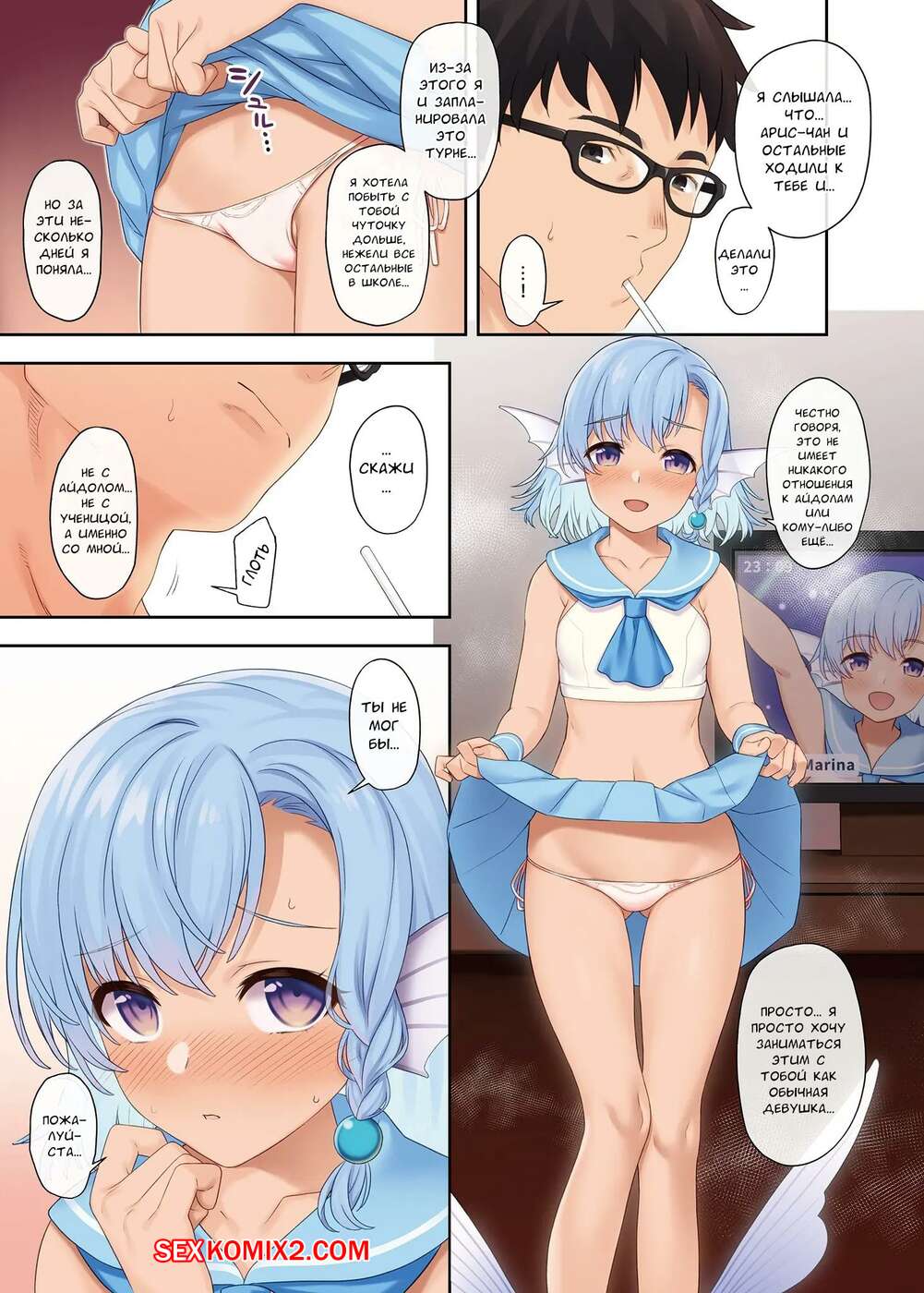 Порно комикс Помощь в спаривании. Aqua Marina. Takunomi Горячие красотки были очень возбуждены и решили повеселиться со своим дружком. Девушки разделись и отсосали большой хуй парня, после чего дали ему себя хорошенько выебать.