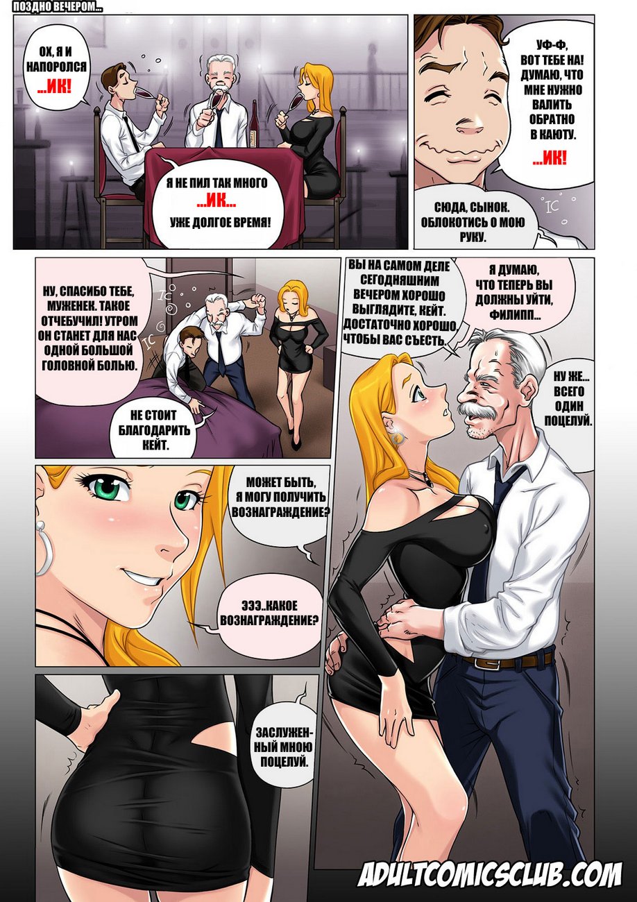 Порно комикс «Похотливый свекр. Часть 2». В этом комиксе вы увидите, как молодая девушка со своим мужем и его отцом поехали на курорт Майями. Они погуляли по городу и пошли загорать на пляж, молодой муженек пошёл купаться и его сексуальная жена осталась наедине со своим тестем. Мужчина предложил красотке намазать её спину кремом от загара, и на не была против. Втирая крем в нежное тело девушки он позволил себе шалость и намазал задницу, в один момент его пальцы даже коснулись анальной дырочки. Красотка сделала вид, что не заметила этого, но ей очень понравилось.