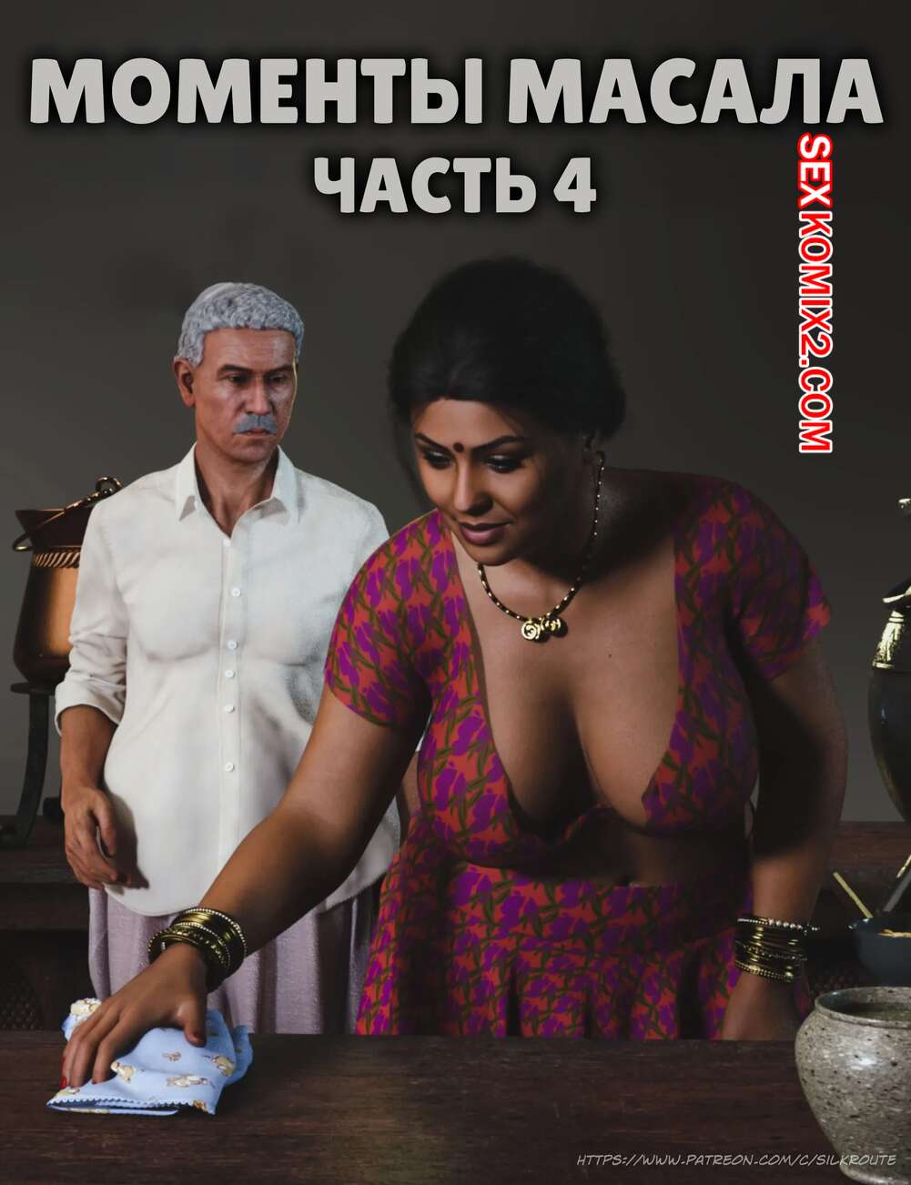 Порно комикс Моменты Масала. Часть 4. Masala Moments Старик остался наедине с горячей милфой, желая повеселиться. Он оголил большие сиськи красотки и стал их ласкать, после чего милфа взяла в руки хуй старика и стала ему дрочить.