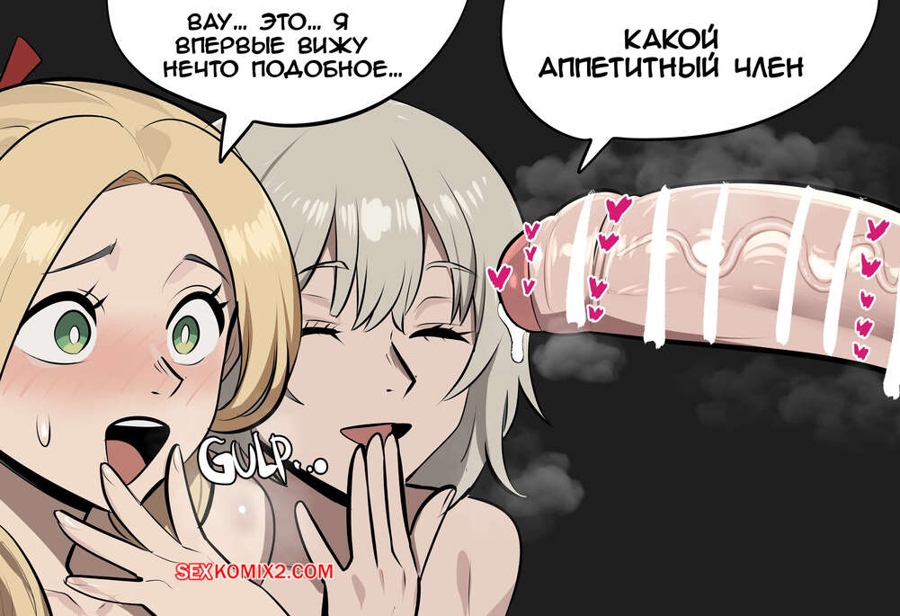 Порно комикс Dungeon Meshi. Секс в подземелье. Dungeon sex. Gumroad Горячие блондинки были очень возбуждены и решили повеселиться со своим дружком. Они разделись и отсосали большой хуй парня, после чего раздвинули ножки и дали ему себя выебать.