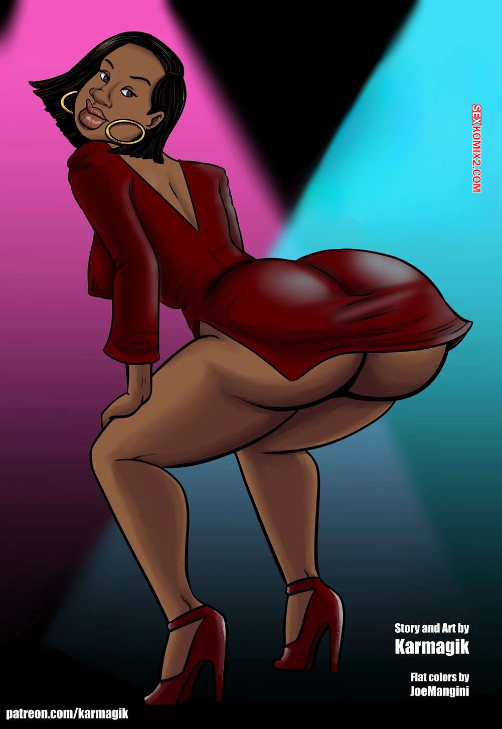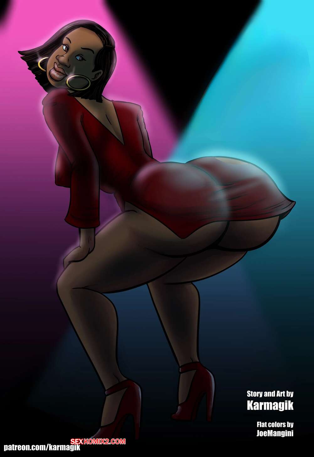 Порно комикс Книжный клуб. Часть 9. The Book Club. Karmagik Темнокожая милфа подцепила в клубе двух парней и отправилась с ними трахаться. Красотка разделась и отсосала хуи своих новых дружков, после чего дала им выебать себя во все дырочки.