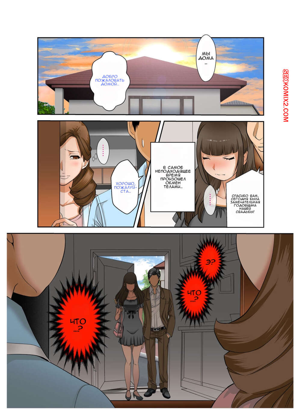 Порно комикс В один прекрасный день моя жена и тёща поменялись телами. Часть 3. fuuga Парень остался дома с горячей милфой и решил воспользоваться моментом. Он стал ласкать ее большие сиськи и пизденку, после чего хорошенько выебал ее большим хуем.