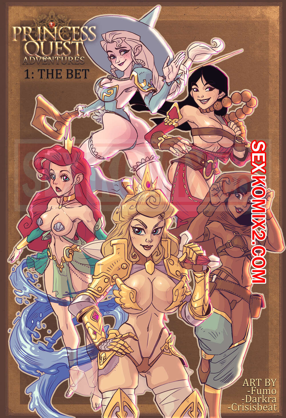Порно комикс Приключения принцесс. Часть 1. Ставка. Новая элитная команда состоящая из принцесс предназначена для выполнения самых сложных заданий. Из королевской казны украли все золото, это под силу толь ко нашим героиням.