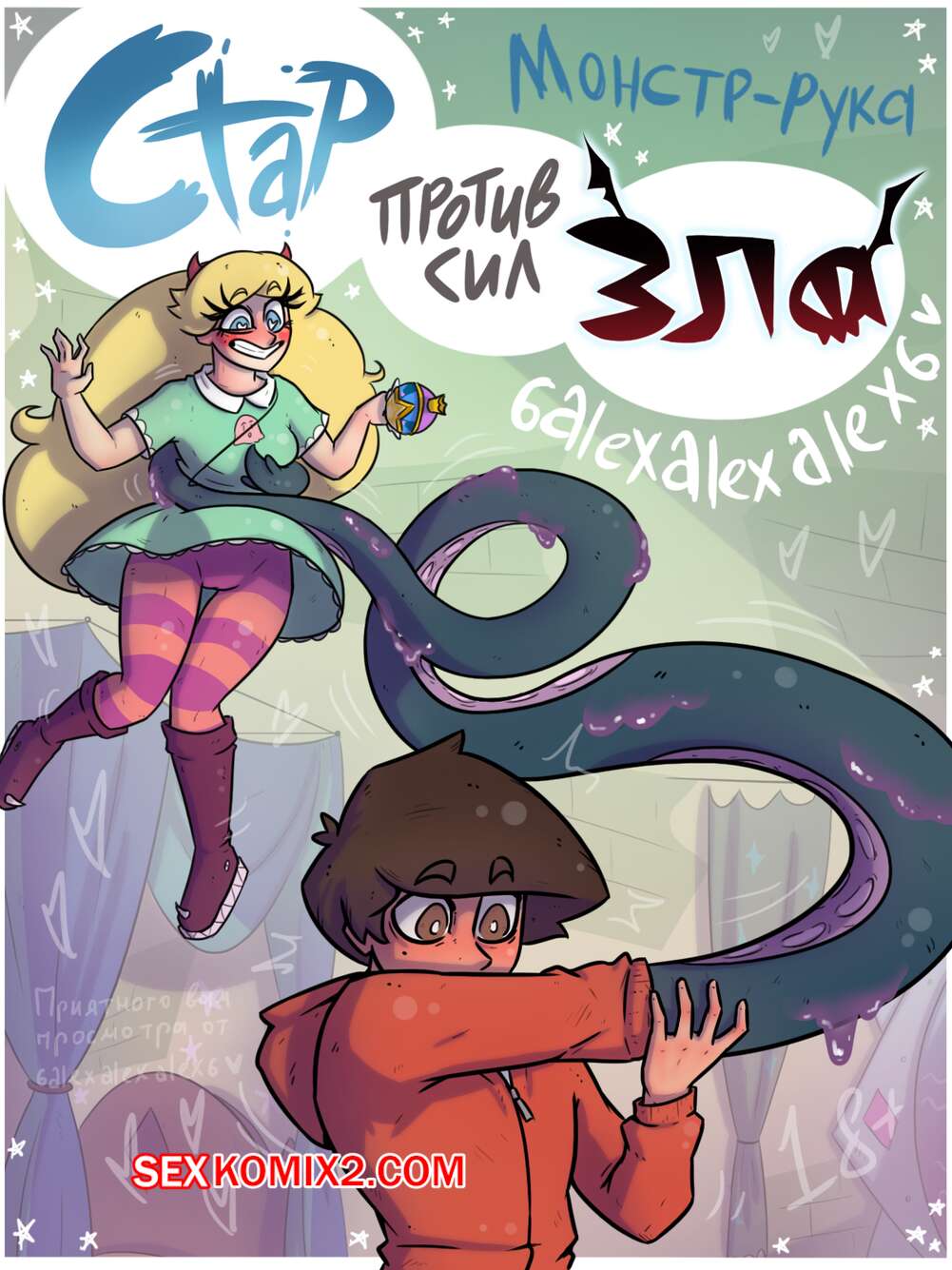 Порно комикс Стар против сил зла. Монстр рука. 6alexalexalex6. sexkomix2.com. Начинающая волшебница по имени Звездочка, предложила свою помощь другу Марко. Она перепутала заклинание и случайно сделала его руку в виде тентакли. Парень не может контролировать новую руку, а она делает что попало. Например лезет в трусишки к Звездочке.