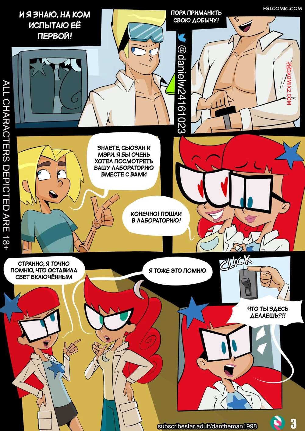 Порно комикс Johnny Test. Джонни Тест и зелье полового созревания. Часть 2. Spakka. После эксперимента своих сестре Джонни значительно вырос и теперь постоянно хочет трахаться. Он решил, что девушки отвественны за его состояние, и хочет трахнуть их.