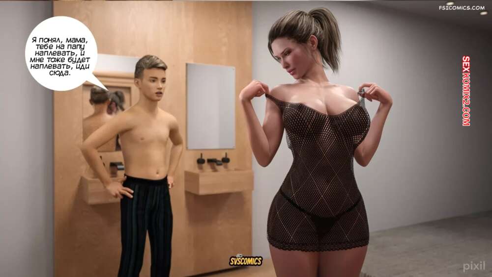 Порно комикс Хорошая жена, лучшая мать. Good Wife Best Mother. Pixil Горячая милфа давно не получает внимание от своего мужа и решает трахнуться с сыном. Красотка пошла в ванну в сексуальном наряде, куда к ней пришел ее любимый сынок.