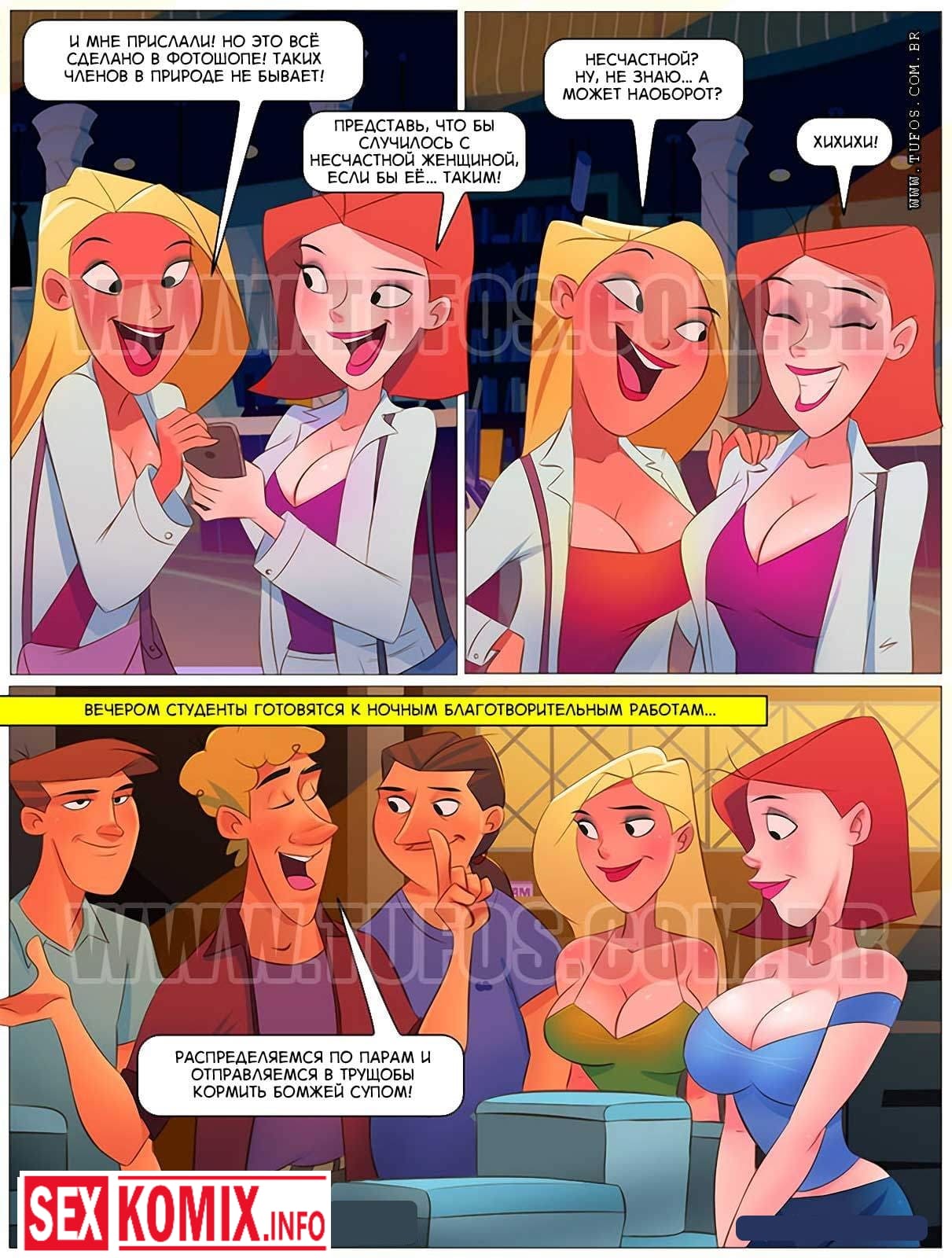 Представляем вам порно комикс Негритос Пиконе – это новая серия от бразильских художников! Так, двум девушкам из медицинского факультета надоело получать фотки голого негритоса Пиконе с огромным членом свисающим ниже колен. Кому, как не им не знать, что таких больших членов не бывает. Но вот однажды ночью на общественных работах разливая благотворительный суп для бездомных, они сталкиваются с нищим, который, кажется, и есть сам негритос Пиконе…