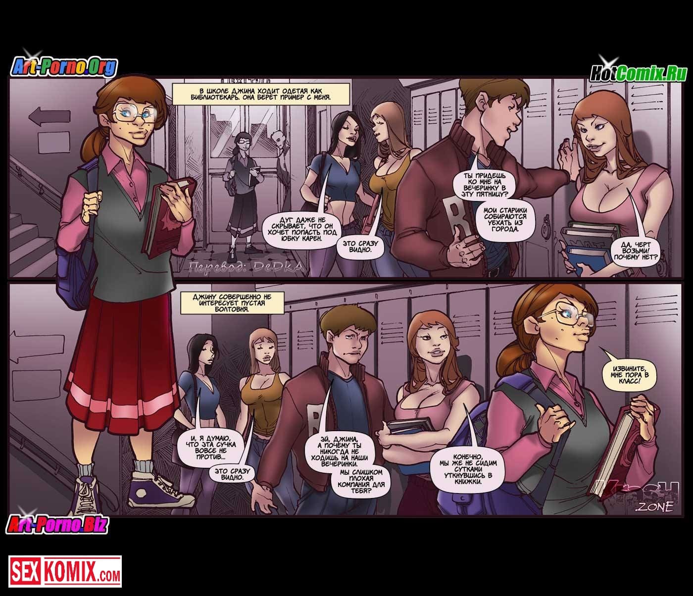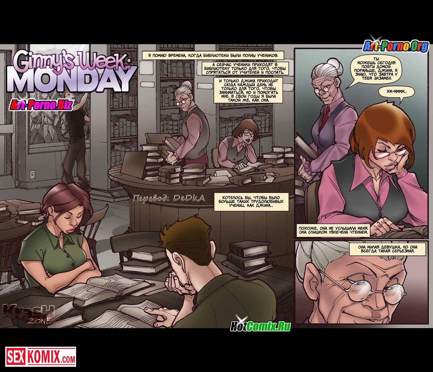 Порно комиксы академия. Неделя Джины. Понедельник. Застенчивая девушка поступила на обучение в академию и вела себя очень прилично. Но спустя одну неделю, после того как над ней поиздевались однокурсницы, она поняла, что нужно быть смелее и сильнее. В следующий понедельник она решила начать всё с начала, но в этот раз она оделась развратной шлюшкой и вела себя очень вызывающе. Она сразу привлекла к себе внимание, в том числе и парне, она все хотели трахнуть её. Во время занятий девушку снял крутой парень и трахнул на задних рядах аудитории.
