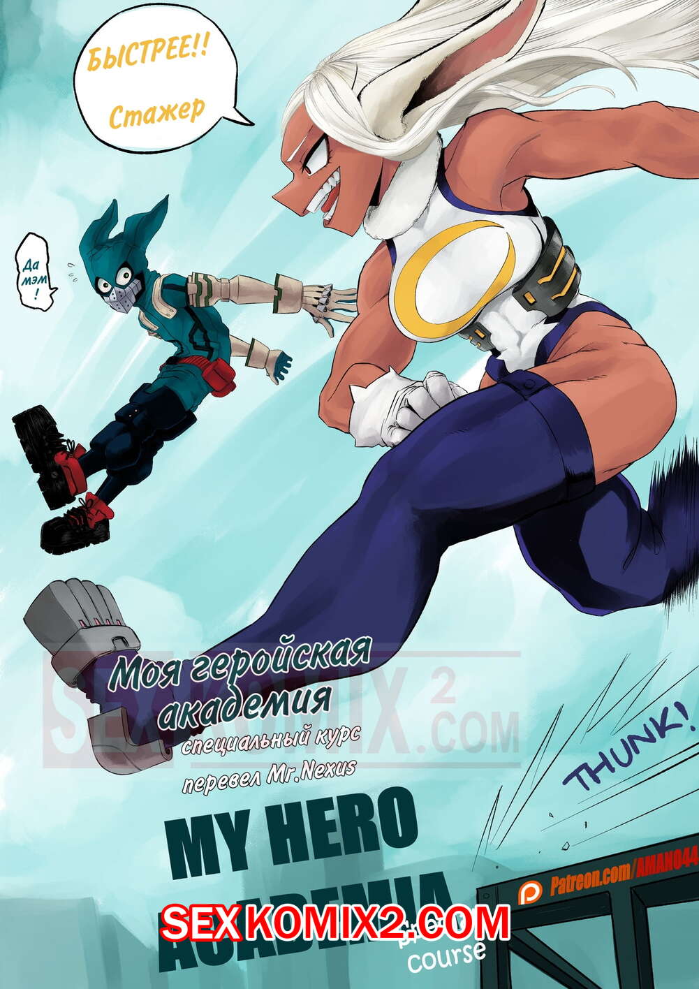 Порно комикс Специальный курс. Часть 1. Моя геройская академия. Special Course. Amano44 Горячая красотка блондинка тренировала своего стажера и начала его задевать. Парню это слишком не понравилось и он решил преподать ей урок. Он раздел ее и хорошенько выебал, дав сучке понять, что он не так плох.