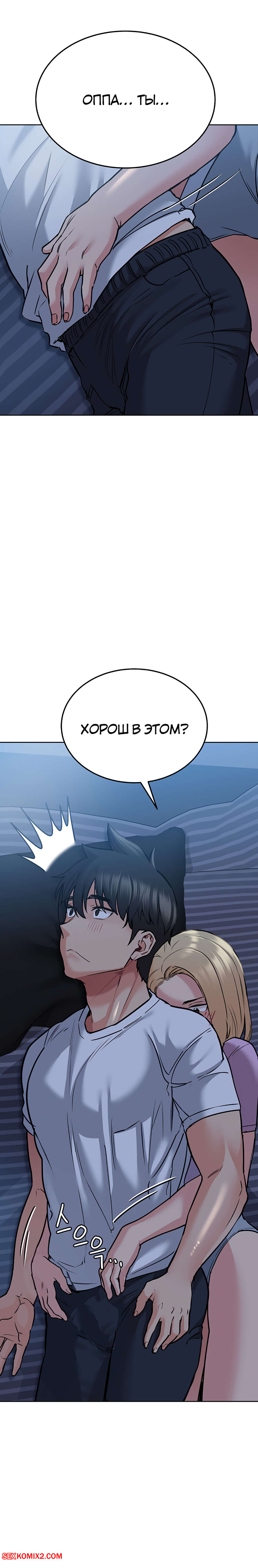 Порно комикс Это секрет для моей матери. Части 17 и 18. Только маме не говори. Парень хотел поддержать девушку, но она упала на наго своей попкой и почувствовала его стоящий хуй. Ночью она пришла к нему в кровать, так как не могла уснуть от мыслей о его члене.