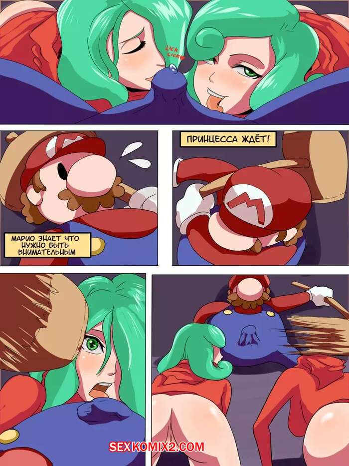 Порно комикс Супер Марио. Безумный день принцессы Пич Пока Марио пытался добраться до своей любимой принцессы, она осталась наедине с двумя горячими красотками с большими хуями. Они дали ей отсосать у них, а затем устроили незабываемое двойное проникновение.