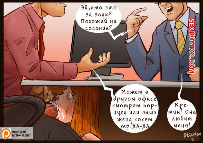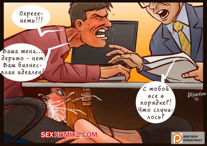 Порно комикс Под столом Парень устроил деловую встречу с партнером, а теперь временем его горячая рыжая жена залезла под стол. Она стала сосать большой хуй парня, сводя его с ума с каждым разом.